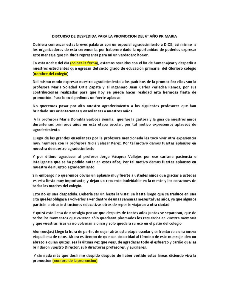 En todo caso, ofrecen un discurso exigente con el propio sistema educativo: Al respecto escudero (2005), señala que la deserción como fracaso escolar para los estudiantes comporta causas y efectos múltiples: Ante este tipo de situaciones, el desafío está en facilitar los apoyos suficientes como para favorecer que los alumnos se sientan capaces y con competencias. Reclaman una educación de calidad que no olvide a los estudiantes . A lo largo de esta herramienta conocerás los elementos que te servirán para construir un discurso persuasivo. Como viste en este ejercicio lo podrás utilizar en . Como cerrar un discurso para estudiantes motivacional : Discurso motivacional para estudiantes lecciones de éxito. Queremos agradecer al magister, ya que al seleccionarnos como parte de este viaje de conocimientos, nos dio la valiosa oportunidad de crecer también como seres . Algunos relatos, como el i have a dream de martin luther king, son la prueba de que las palabras pueden cambiar la historia. Descubre en este vídeo cómo terminar un discurso o una presentación cuando estás hablando en público delante de una audiencia. Aquí verás frases de graduación de universidad, secundaria, bachillerato, preparatoria y frases cortas para los graduados con imágenes para descargar.